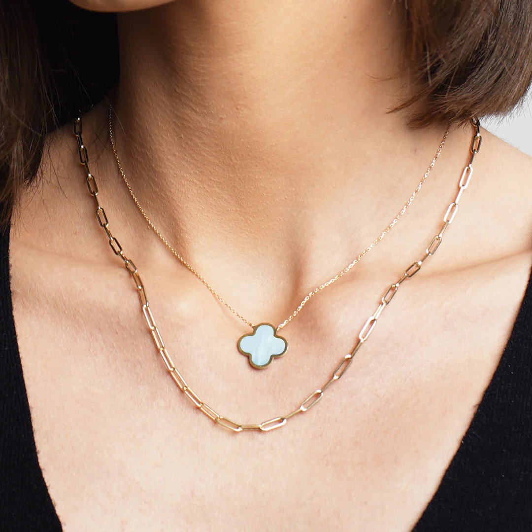 The single clover necklace is our go-to piece to add to any look! Dress it up with a cocktail dress and heels, or dress it down with your comfiest loungewear. Either way, you'll be classic chic!