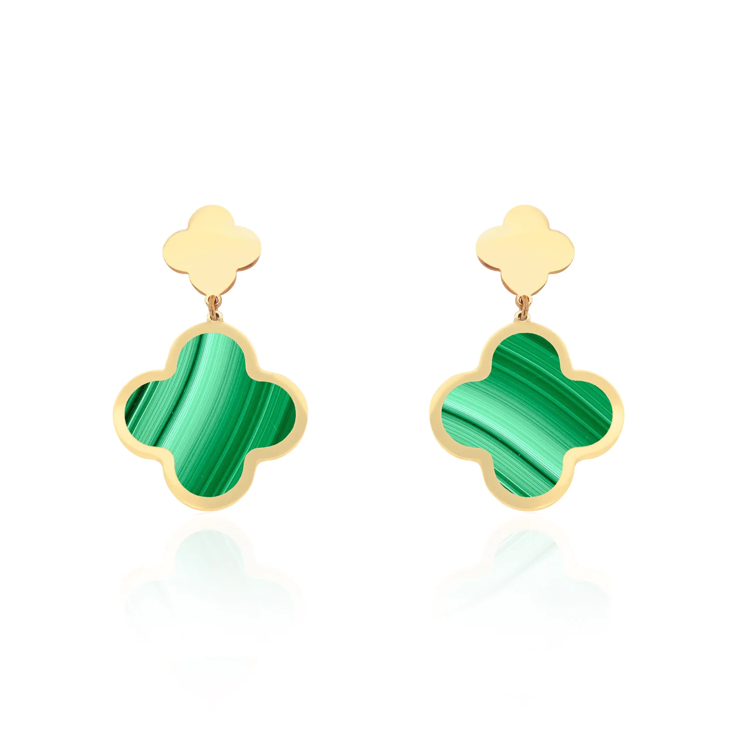 2 Large Malachite Clovers measuring: 14 millimeters - 0.55 inch
