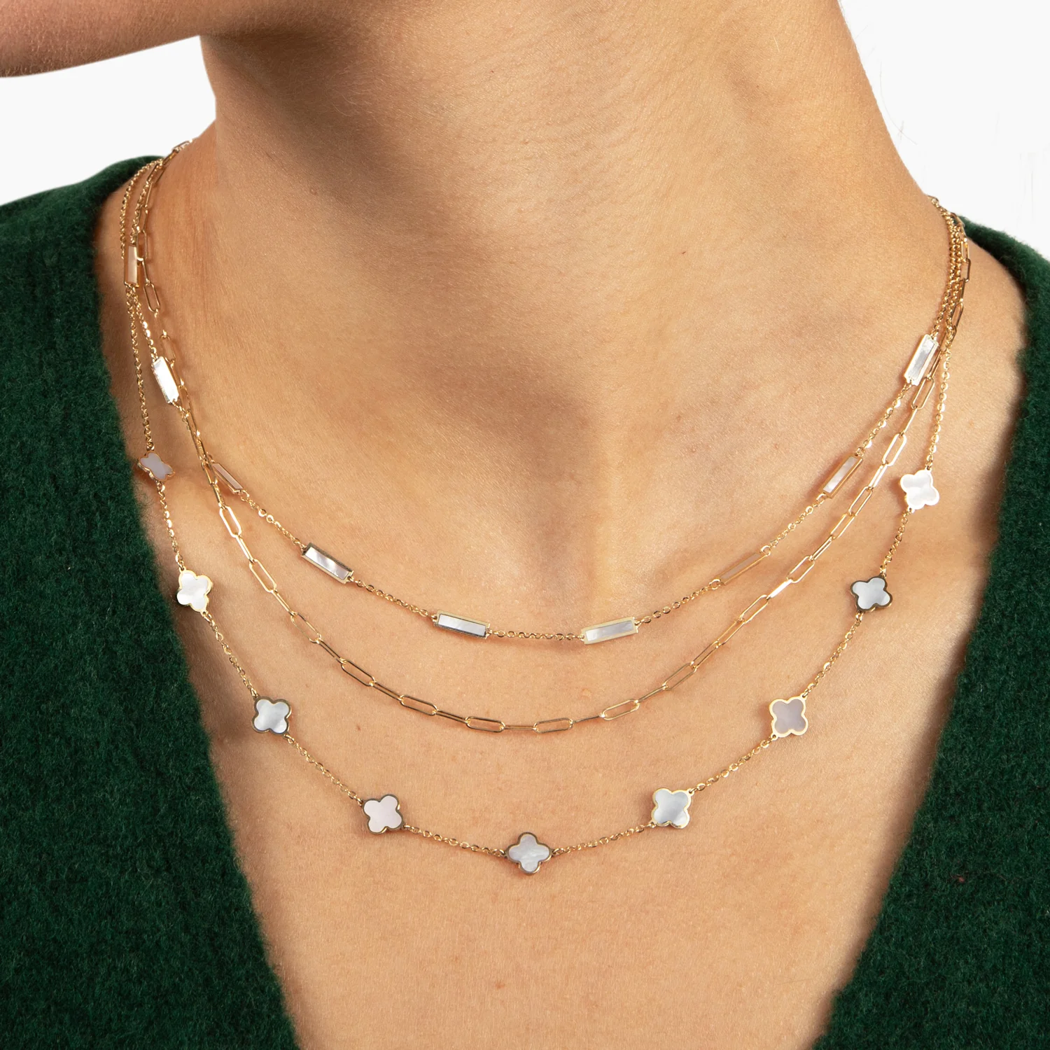 Mini Mother of Pearl Clover Necklace